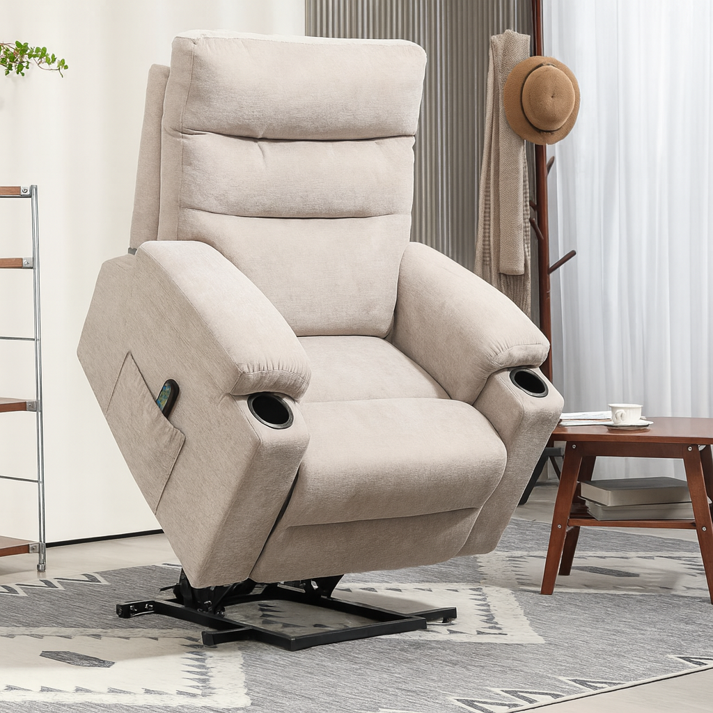 • Elektrische Aufstehhilfe unterstützt sanft den Übergang vom Sitzen zum Stehen.